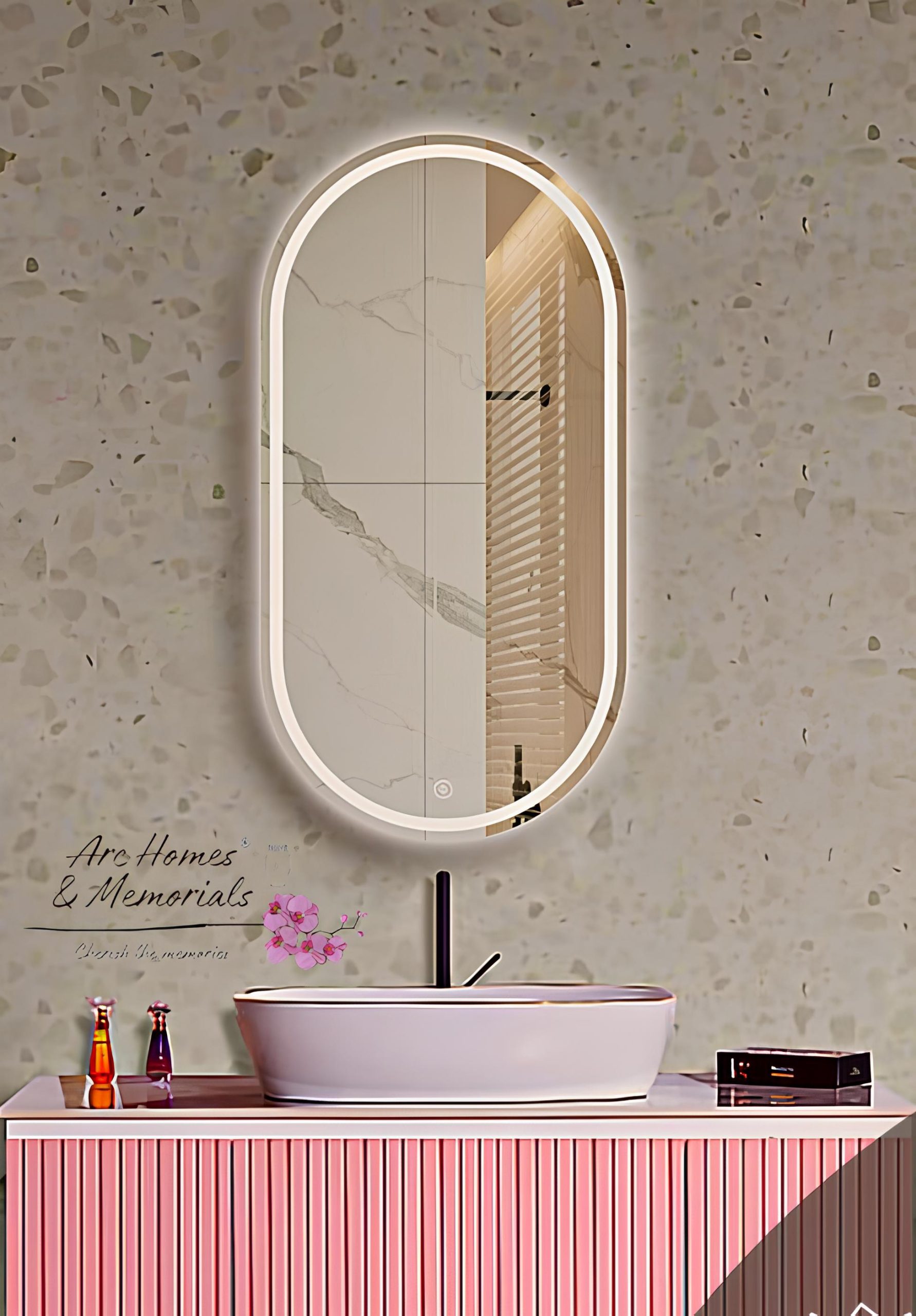 Premium Wall Mounted Capsule Backlit Digital Led Mirror with Touch Sensor | Bathroom Mirror with Led Lights (Triple Light)